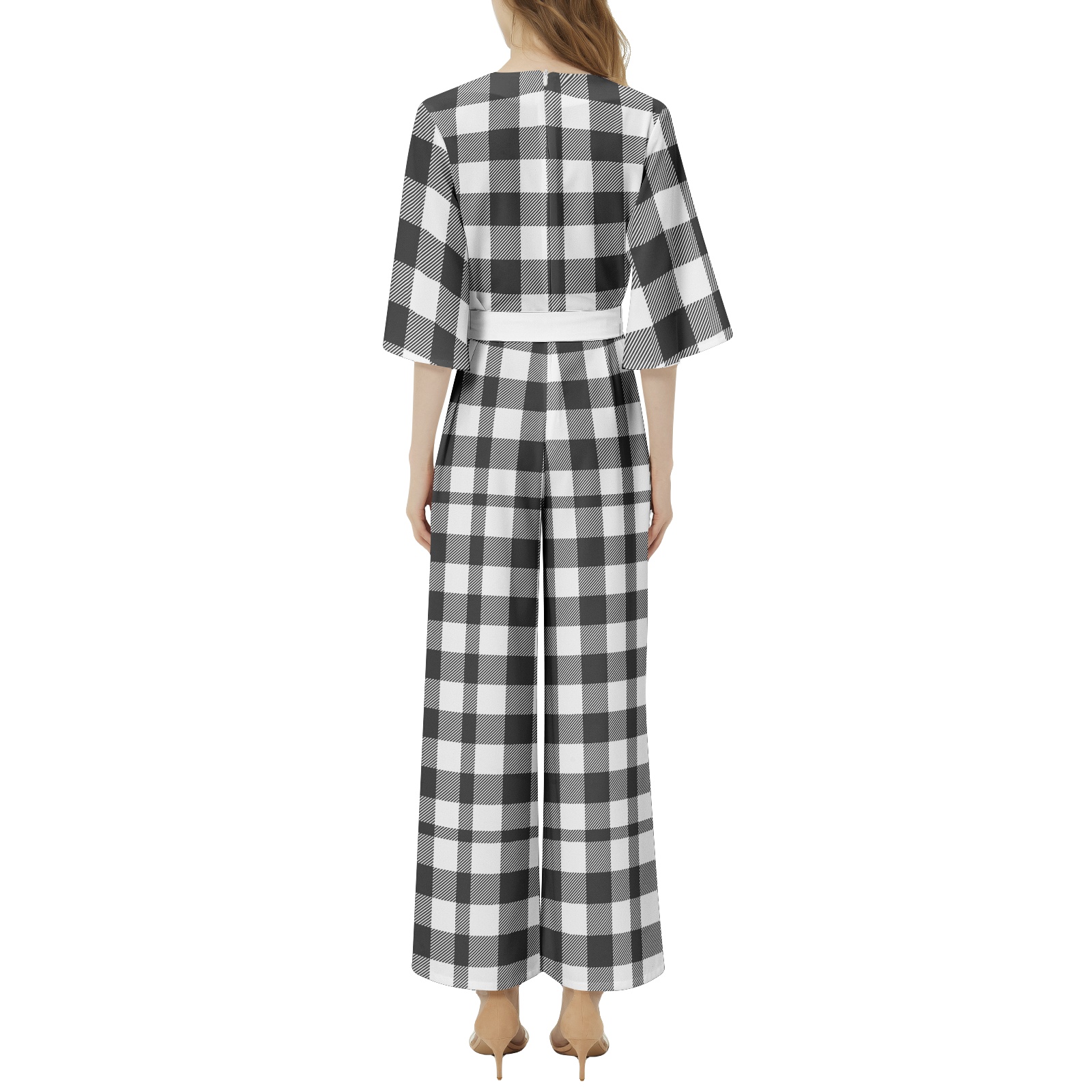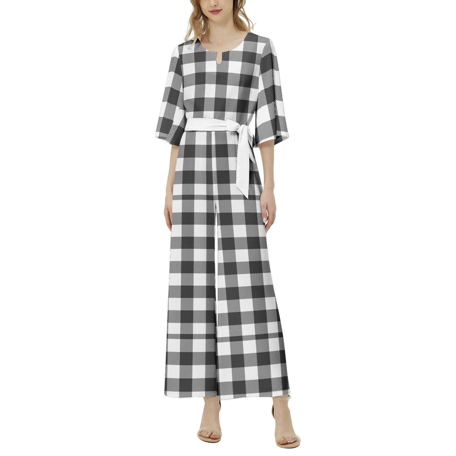 Chic Plaid Belted Wide-Leg Jumpsuit – Elegant & Comfortable
