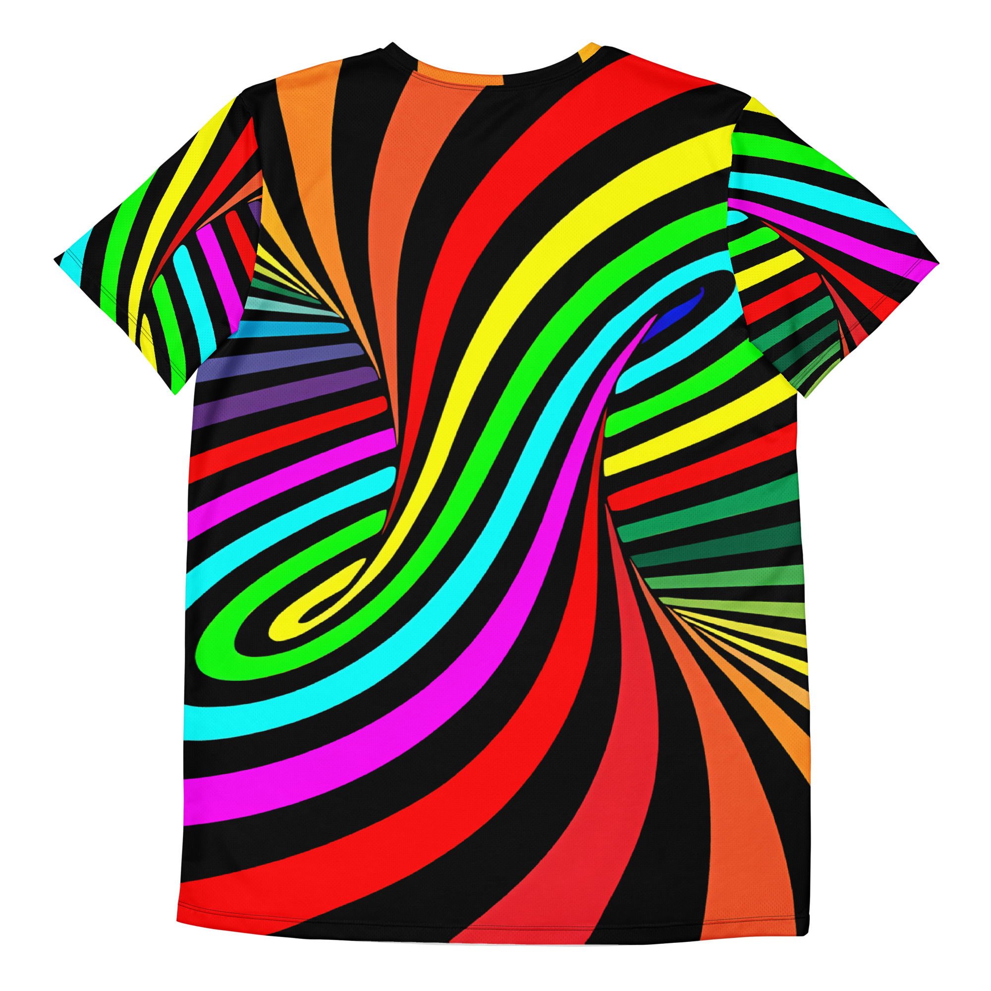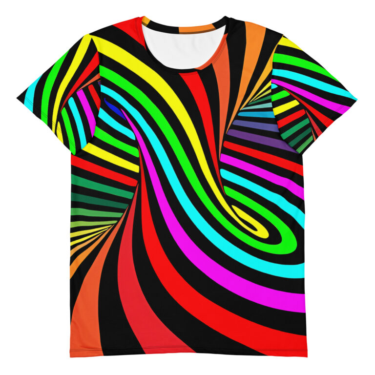 The REJEY Infinite Motion All-Over Print Men’s Athletic T-Shirt captures the dynamic energy of constant forward momentum. Featuring a hypnotic 3D spiral design in vibrant neon colors—electric yellows, blazing reds, vivid greens, hot pinks, and electric blues—against deep black, this piece creates the illusion of infinite depth and perpetual motion.