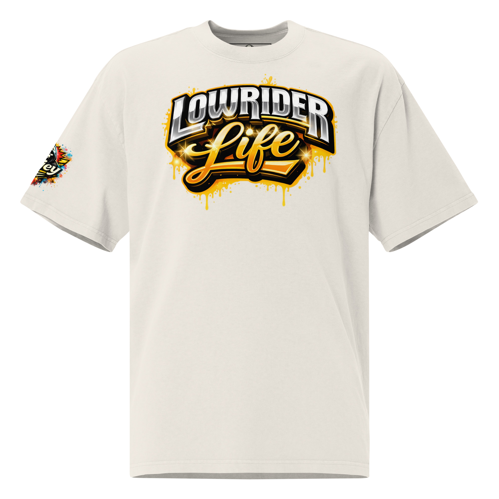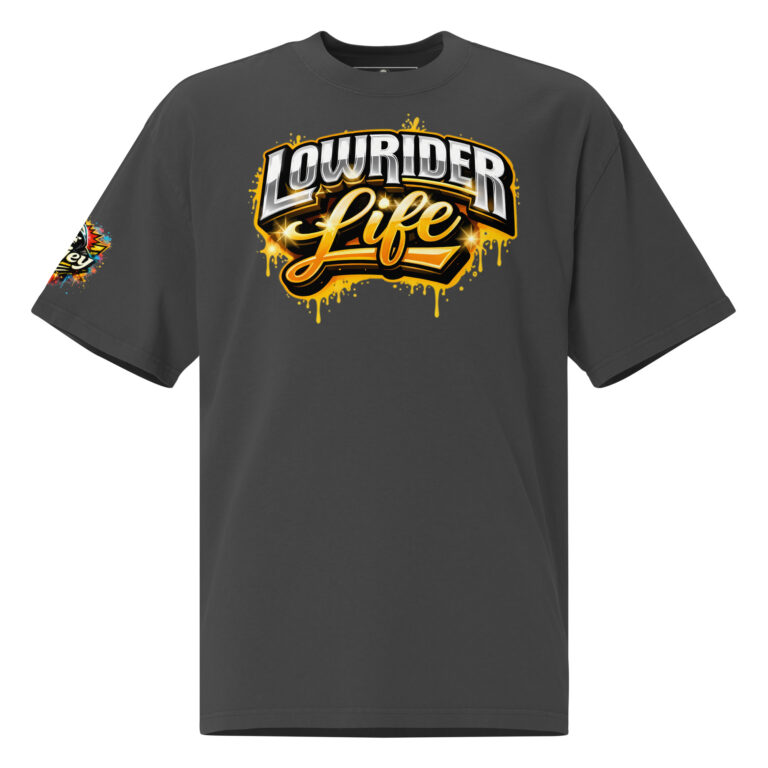 “LOWRIDER LIFE” chrome and gold graphic on chest