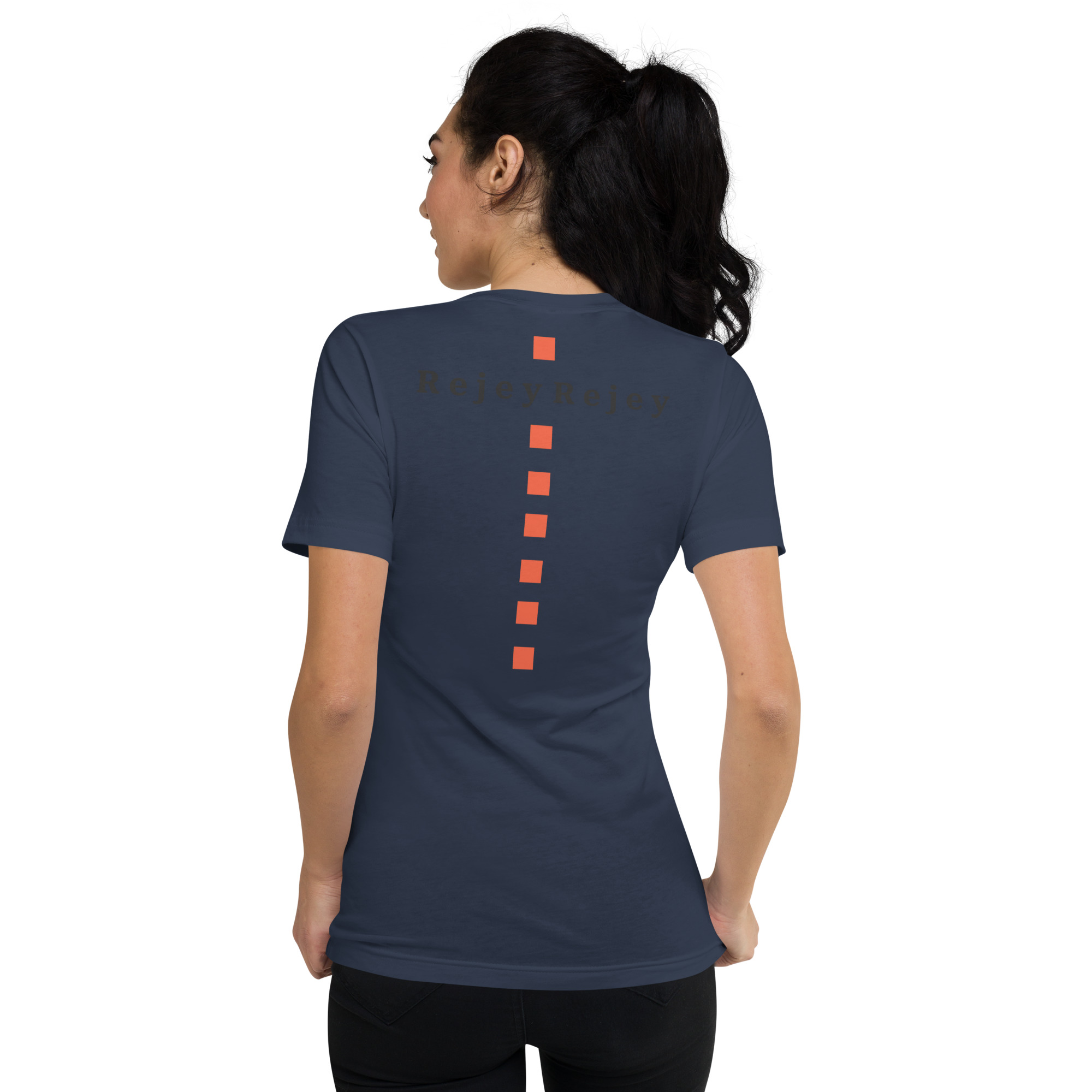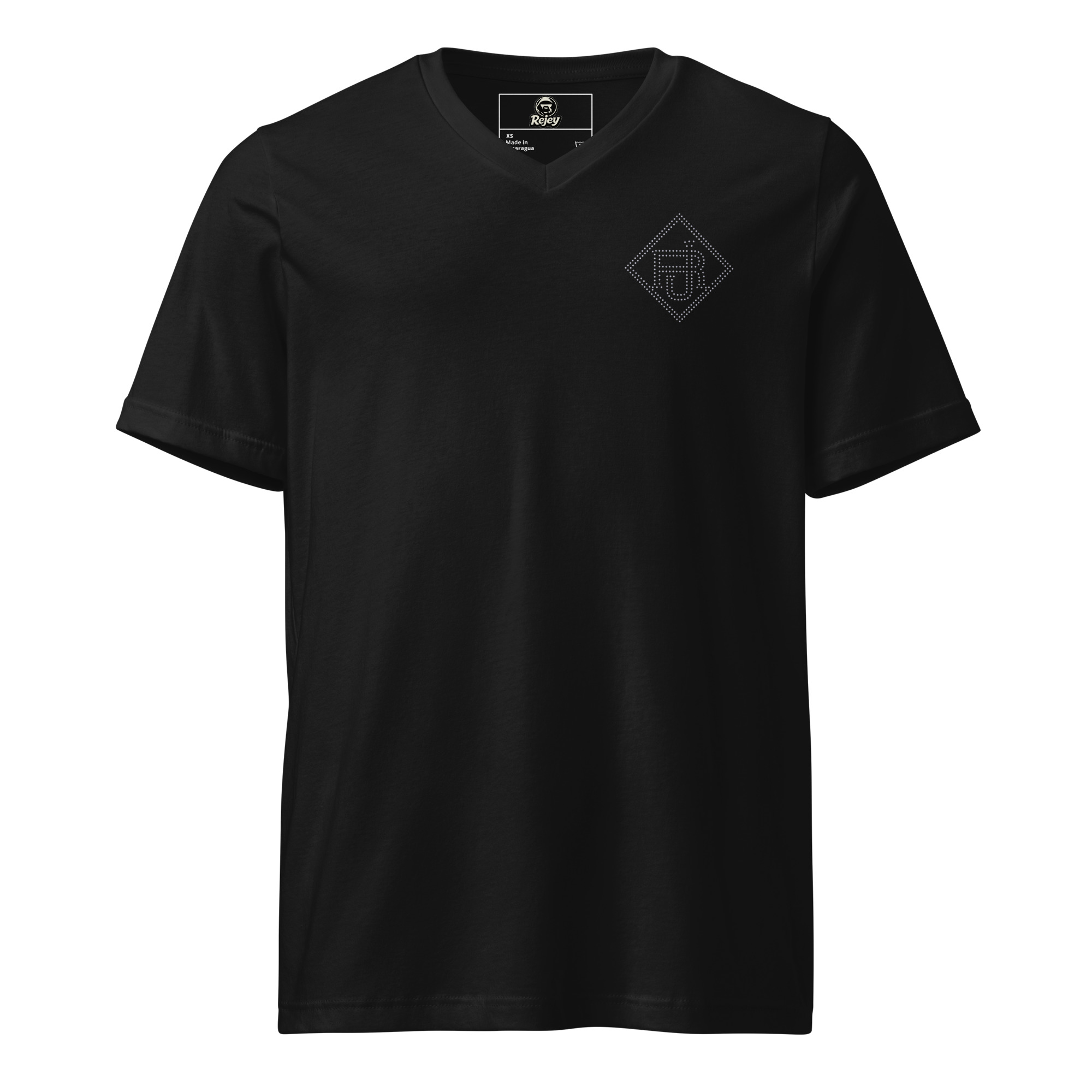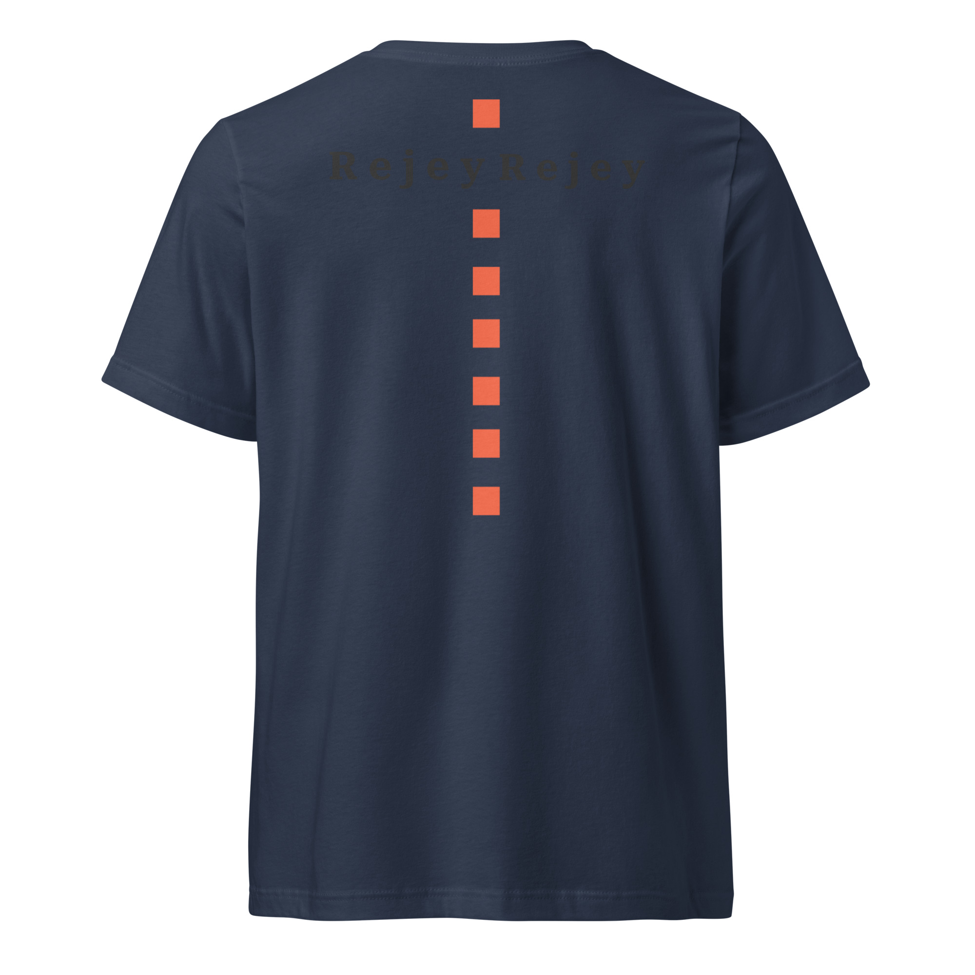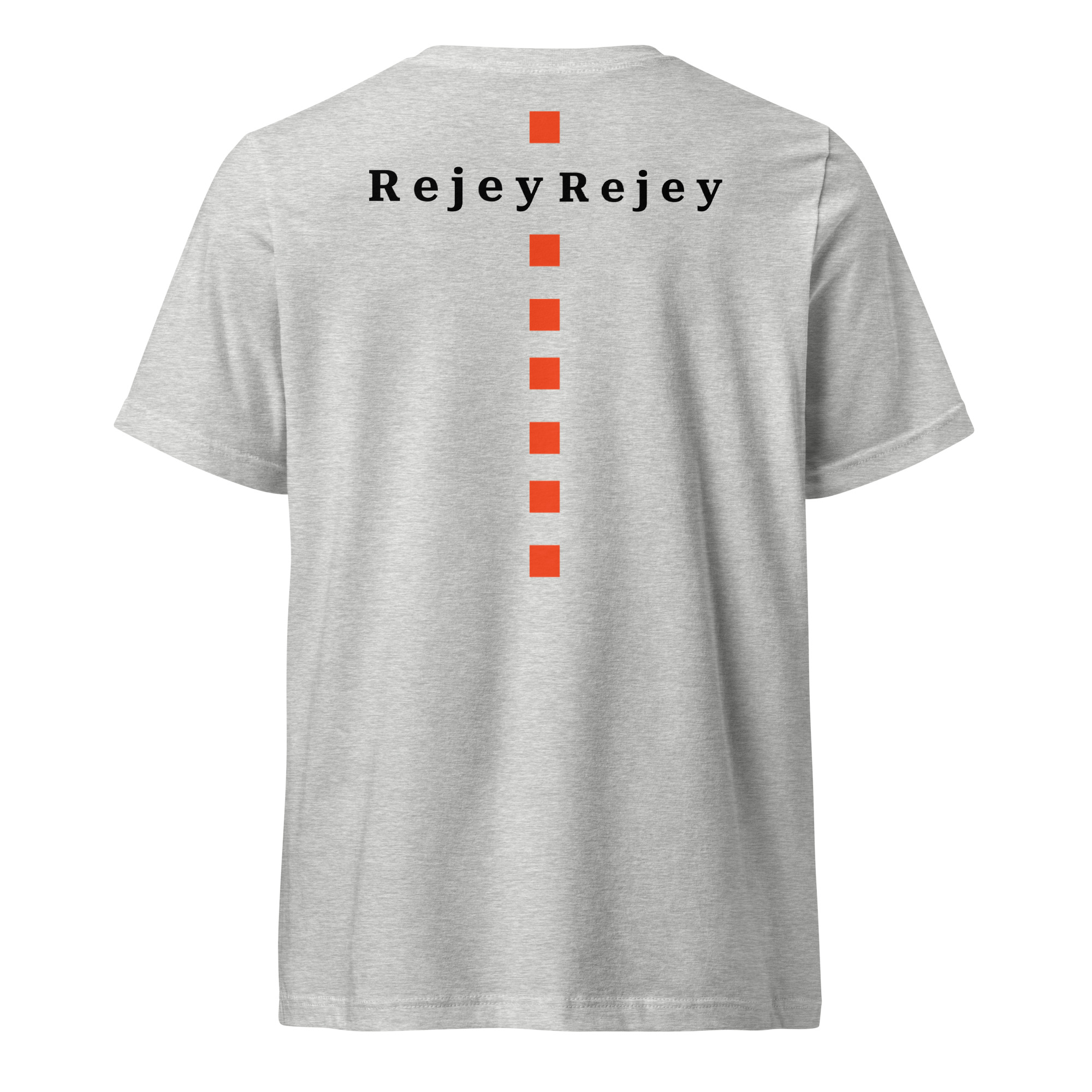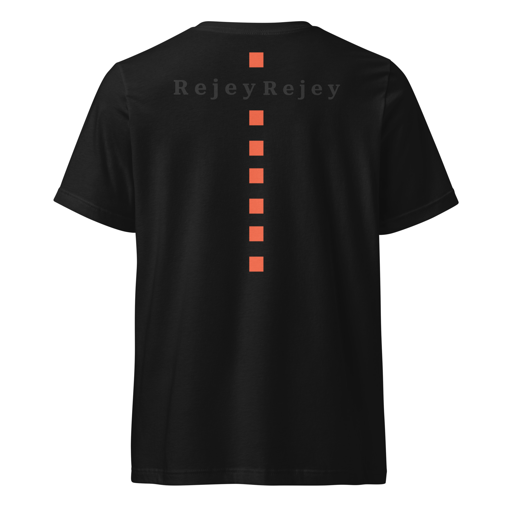 Featuring a rhinestone RJ diamond emblem on the chest and a bold vertical orange line crossing the back with dual Rejey branding, this piece blends elegance with edge.